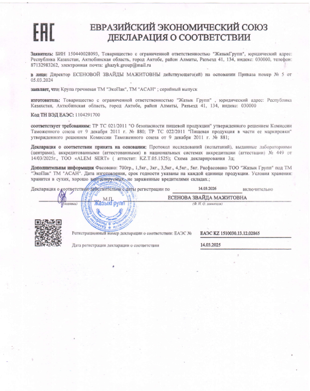 ООО «Фуд-Импорт» - официальный импортёр круп из Казахстана. Мы поставляем крупы под брендами ТМ «ЭкоПак» и ТМ «Айдони» с полным пакетом сопроводительных документов, включая сертификаты качества, происхождения и фитосанитарные справки.